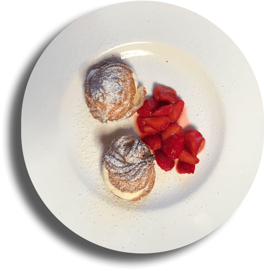 Erdbeeren waschen und vierteln. Mit etwas Zucker bestreuen und gut durchziehen lassen. Dann dazu anrichten.